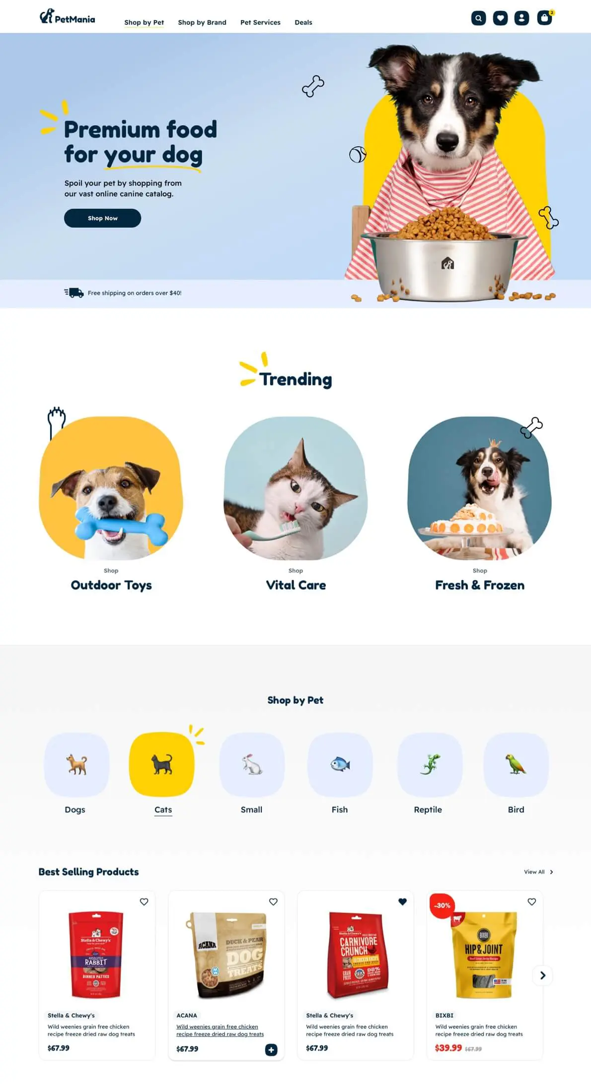 PetMania is a charming, modern eCommerce WordPress theme built with having in mind the actual needs of businesses operating in this segment, their furry clients and caring pet parents.